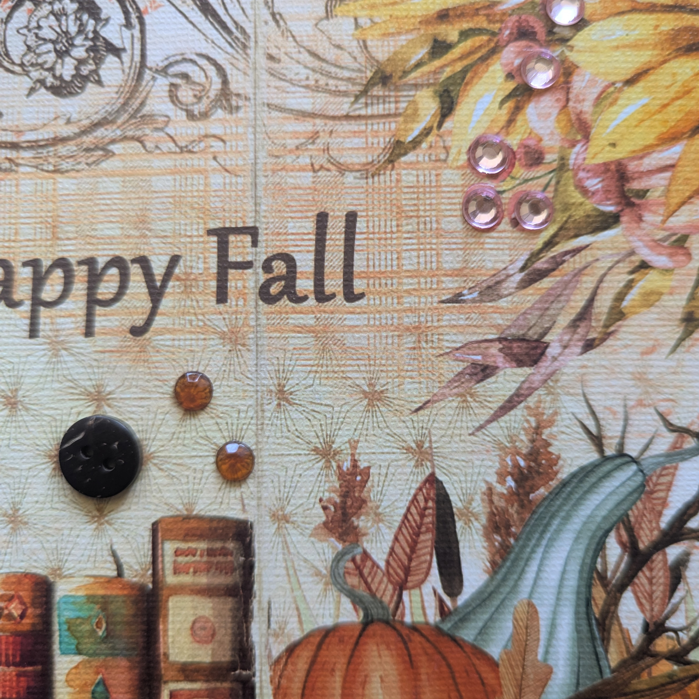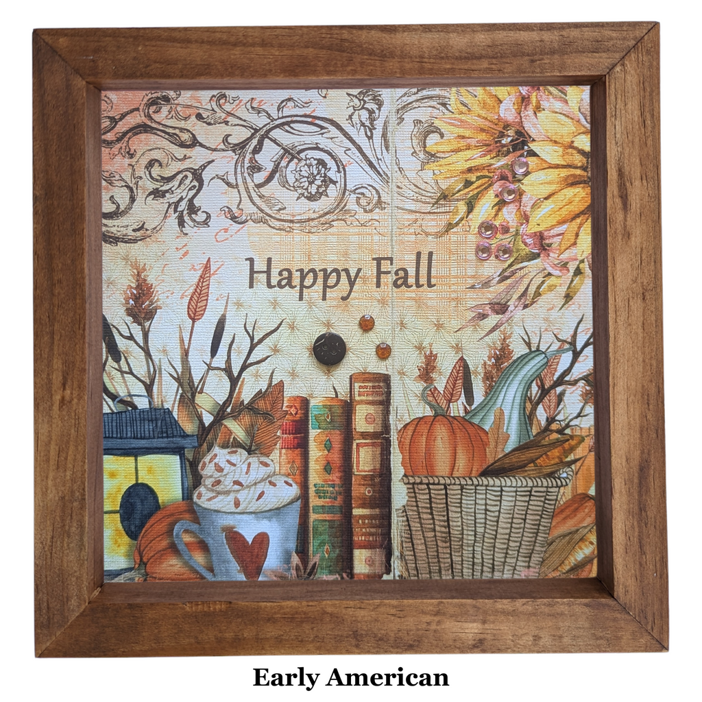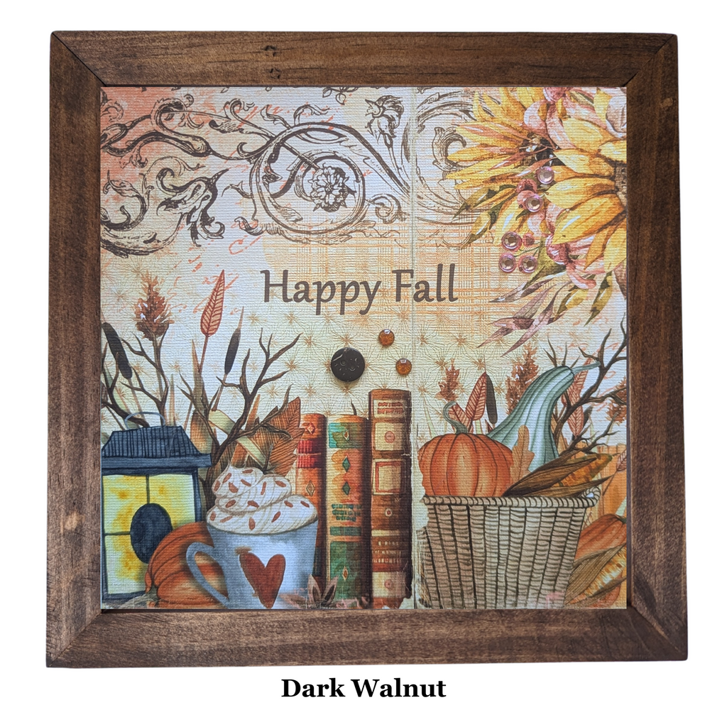 Celebrate the change of seasons with this warm and cozy fall scene. A hot cup of something delicious, a good book, cheery sunflowers and a basket of fall gourds fresh from the garden. Enjoy!