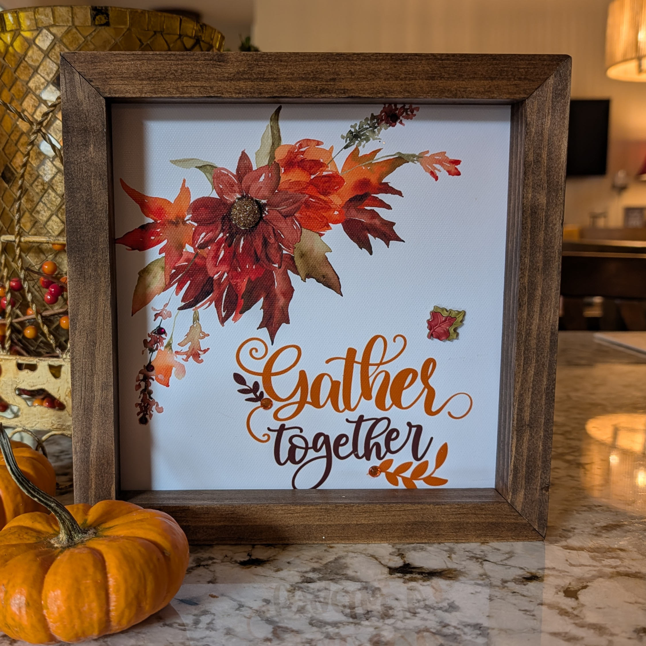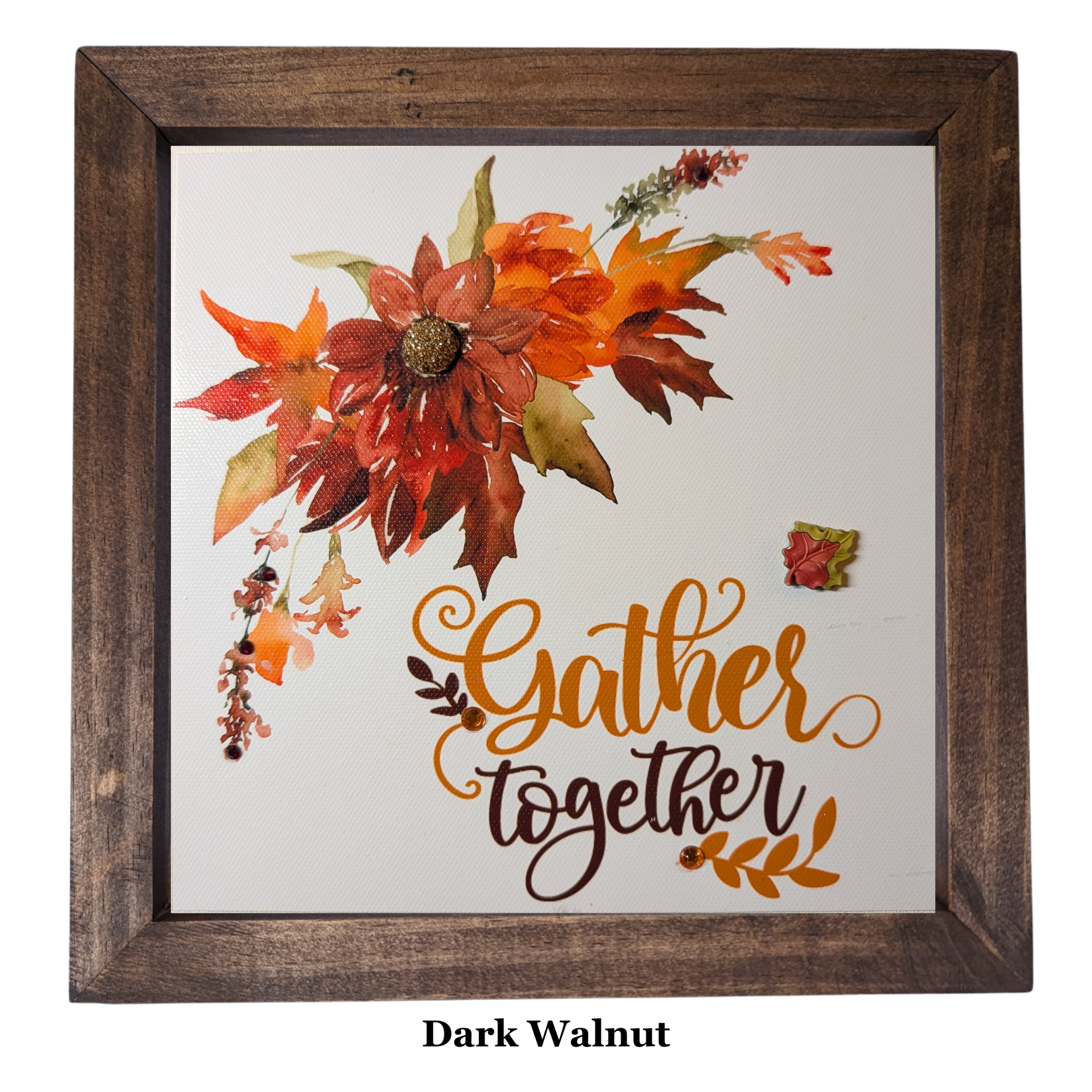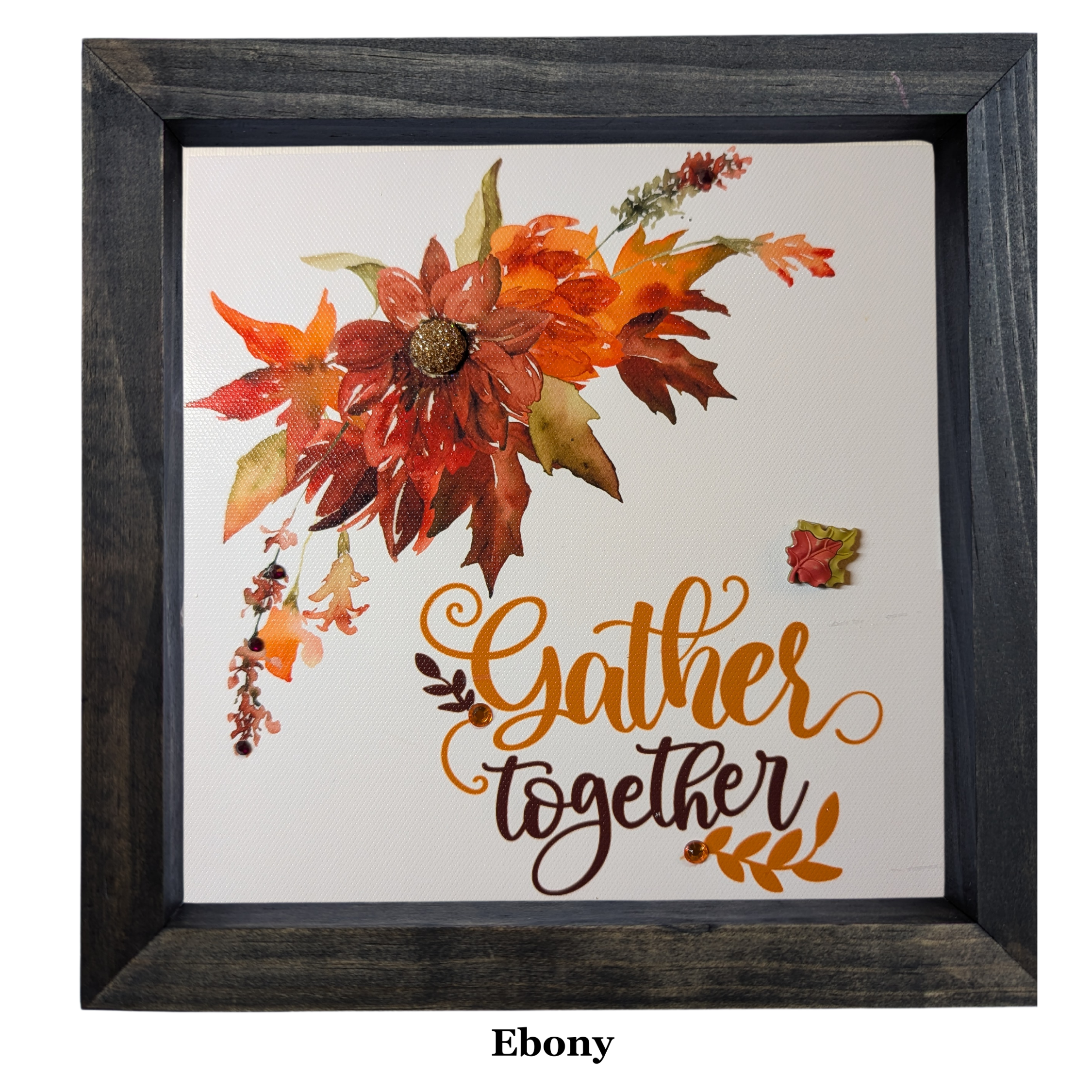 Savor the colors of the season with this richly autumn colored Thanksgiving canvas. Hand decorated with buttons and rhinestones, this canvas will provide just the right amount of sparkle for your Thanksgiving decor.